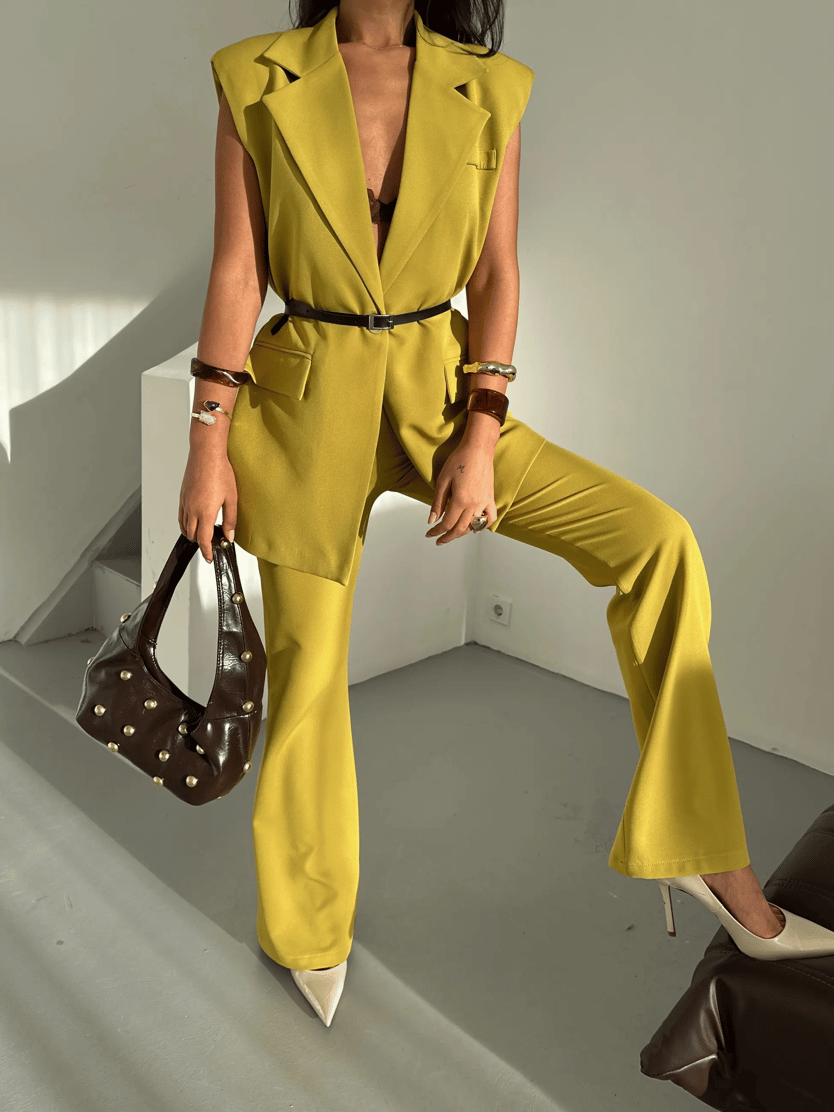 Deri Kemerli Yelek - Yağ Yeşili (MYD7459_Yağ Yeşili)