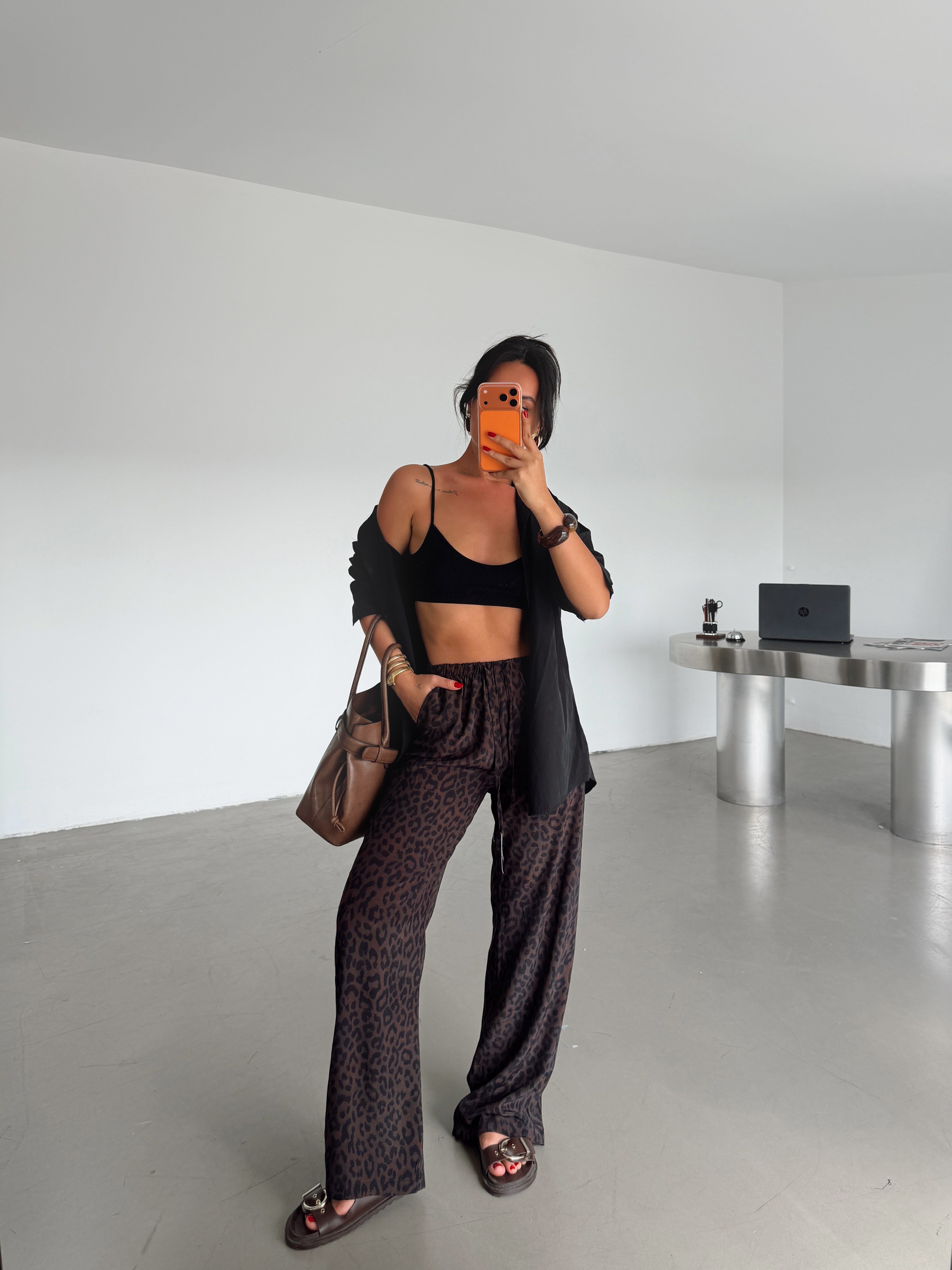 Desenli Parlak Keten Pantolon - Kahve (MD4520_Kahve)