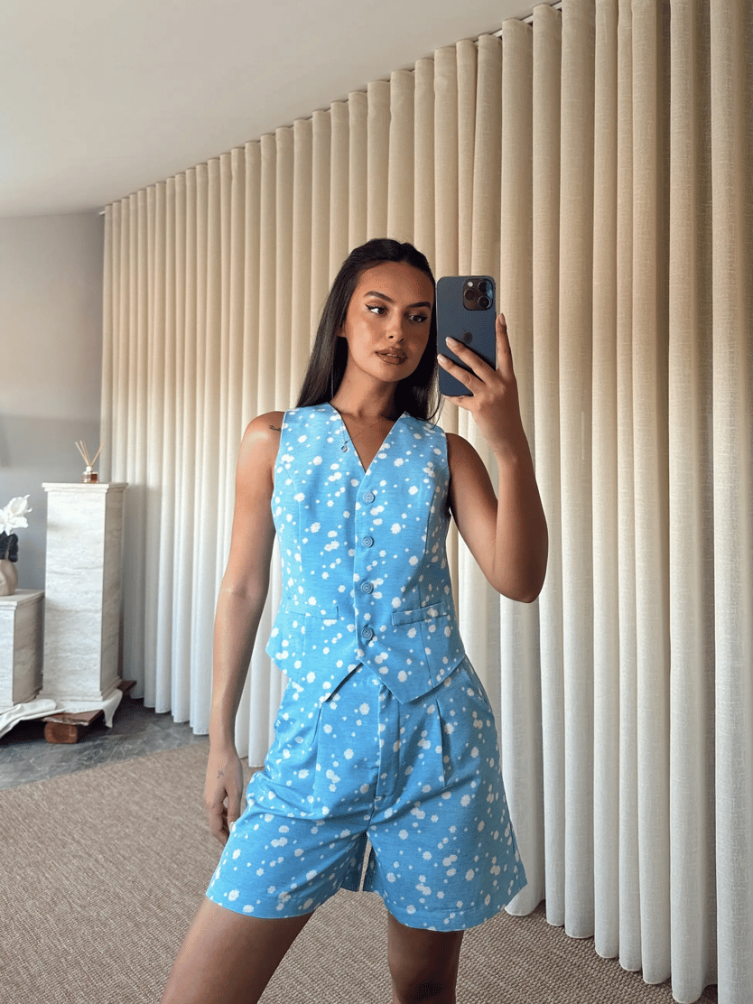 Desenli Şort-Yelek Takım - Bebe Mavi (MD3926_Bebe Mavi)