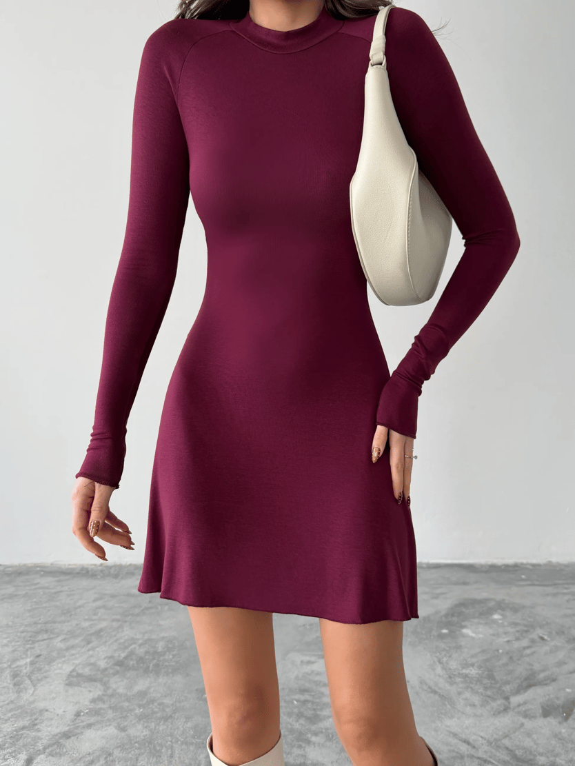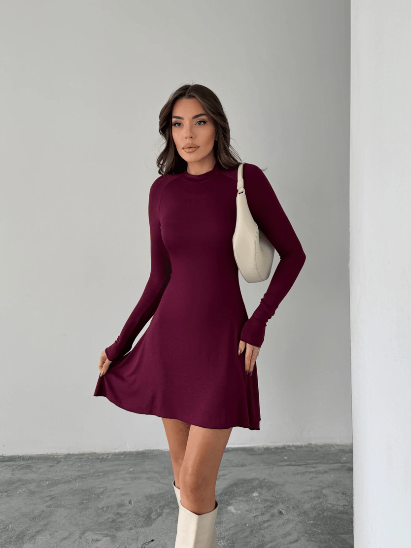 Dik Yaka Mini Elbise - Bordo (MD4302_Bordo)