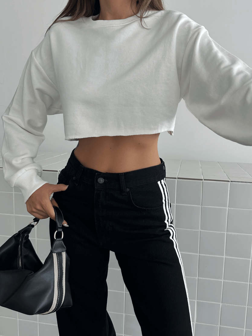 Dikişsiz Crop Sweat - Beyaz (MD4030_Beyaz)
