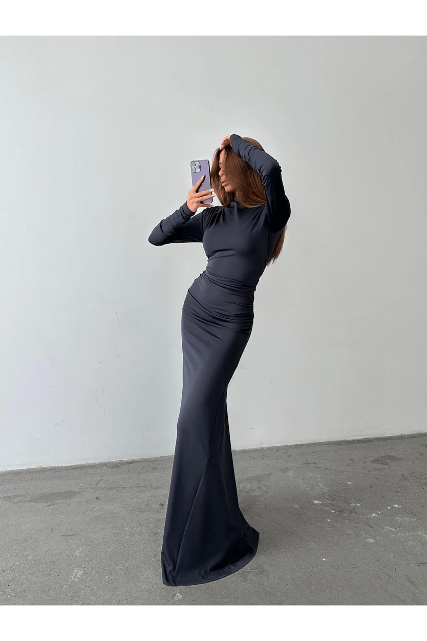 Drape Balıkçı Elbise Füme - Füme (MYD7429.EL.01_Füme)
