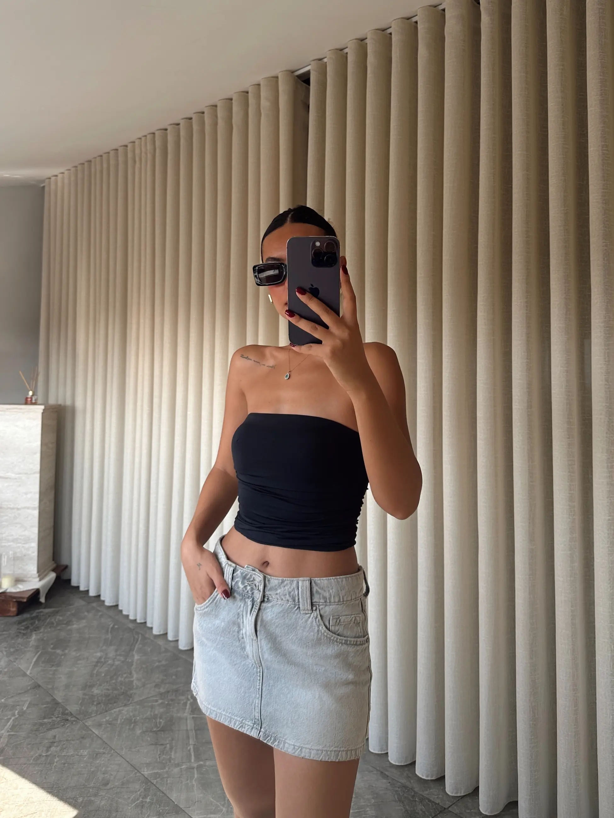 Drapeli Straplez Crop - Siyah (MD3963_Siyah)
