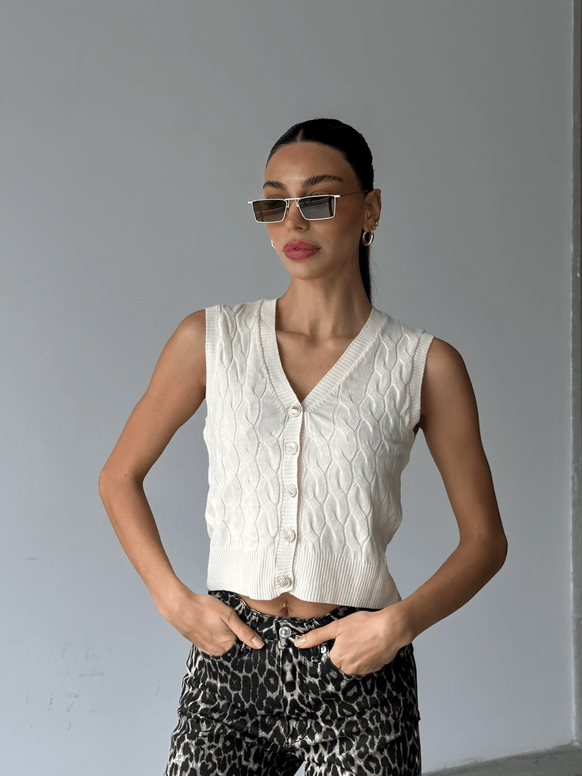 Elsa Triko Örgü Yelek Ekru - Ekru (MYD9306.TR.01_Ekru)