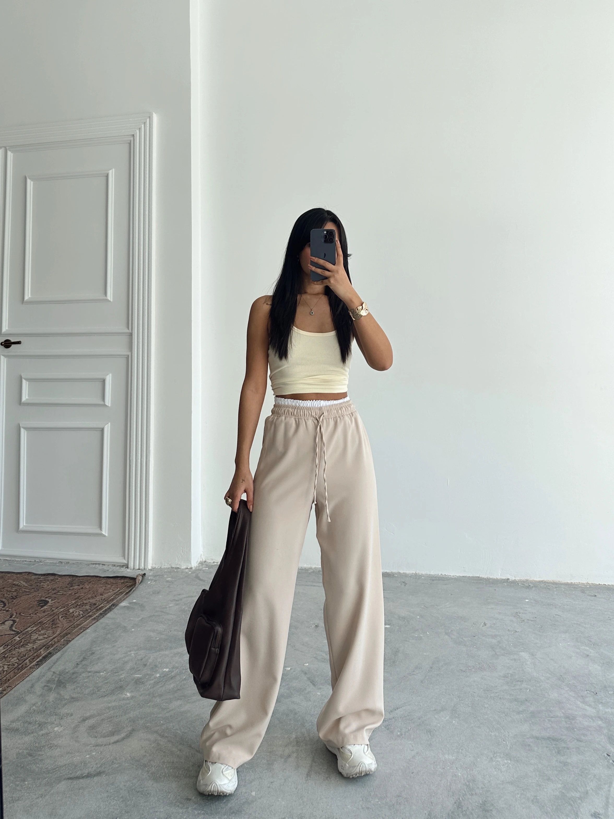 Çimalı Bel Lastik Selanik Pantolon - Bej
