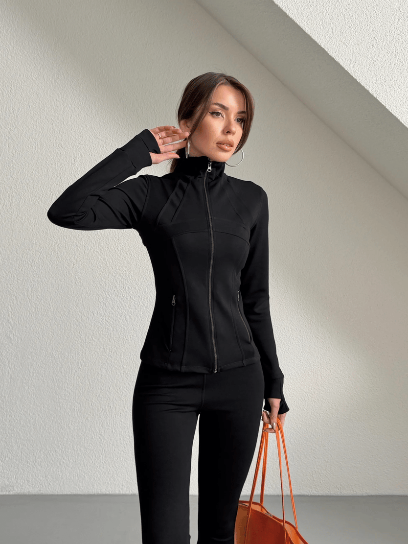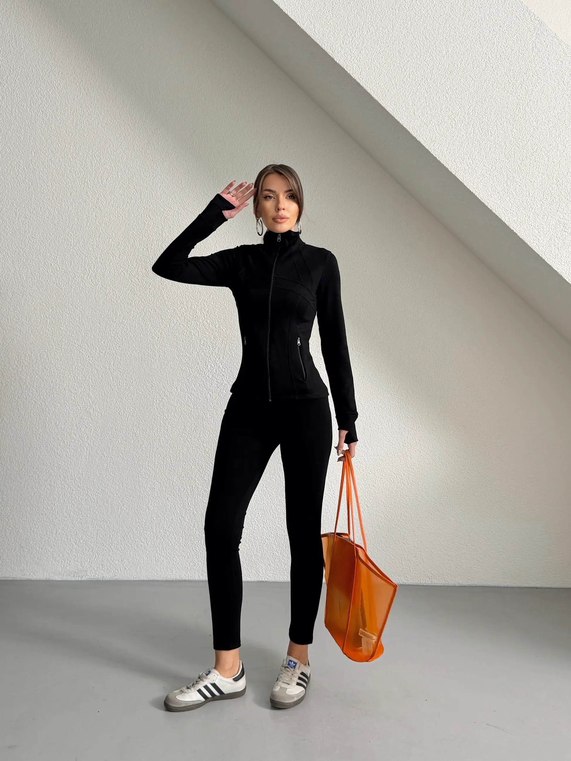 Fermuarlı Taytlı Takım - Siyah (MD4348_Siyah)