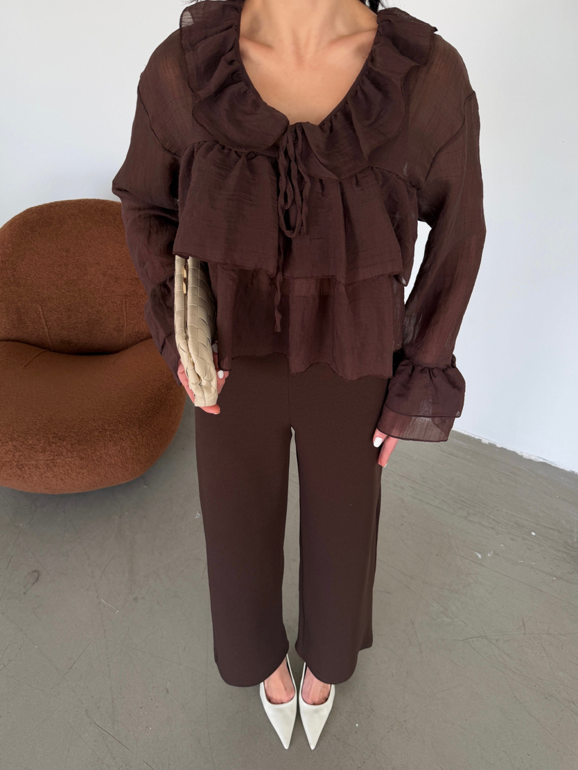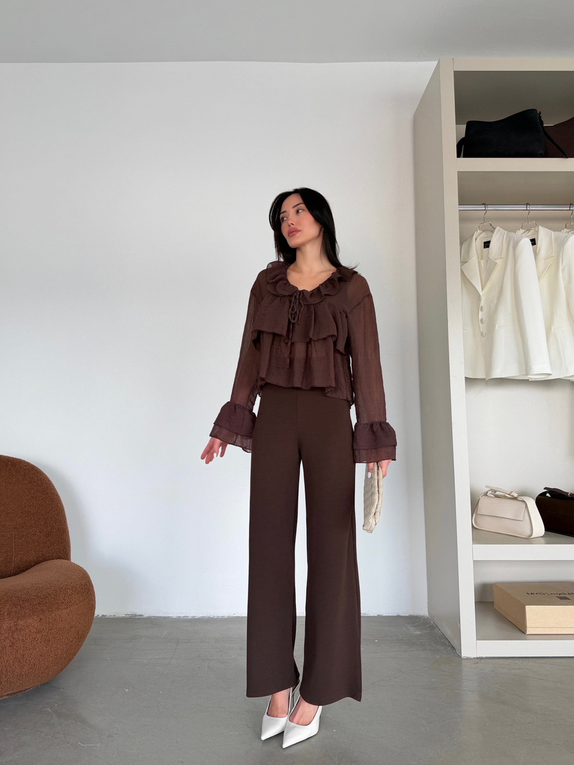 Fırfır Detaylı Bluz - Kahve (MD4406_Kahve)