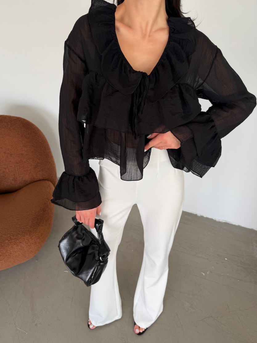 Fırfır Detaylı Bluz - Siyah (MD4406_Siyah)
