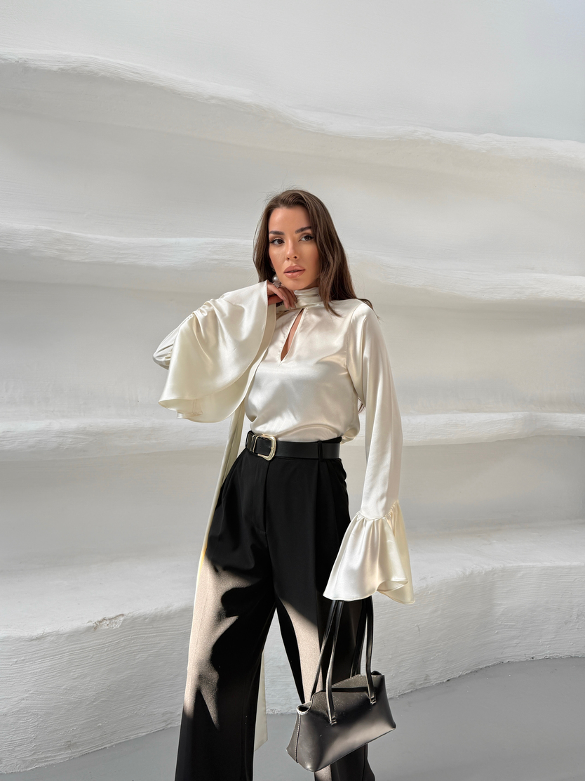 Fular Detay İspanyol Kol Saten Bluz - Siyah Fular Detay İspanyol Kol Saten Bluz - Mürdüm Fular Detay İspanyol Kol Saten Bluz - Bebe Mavi