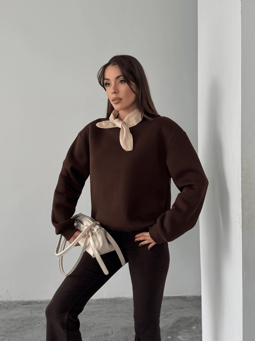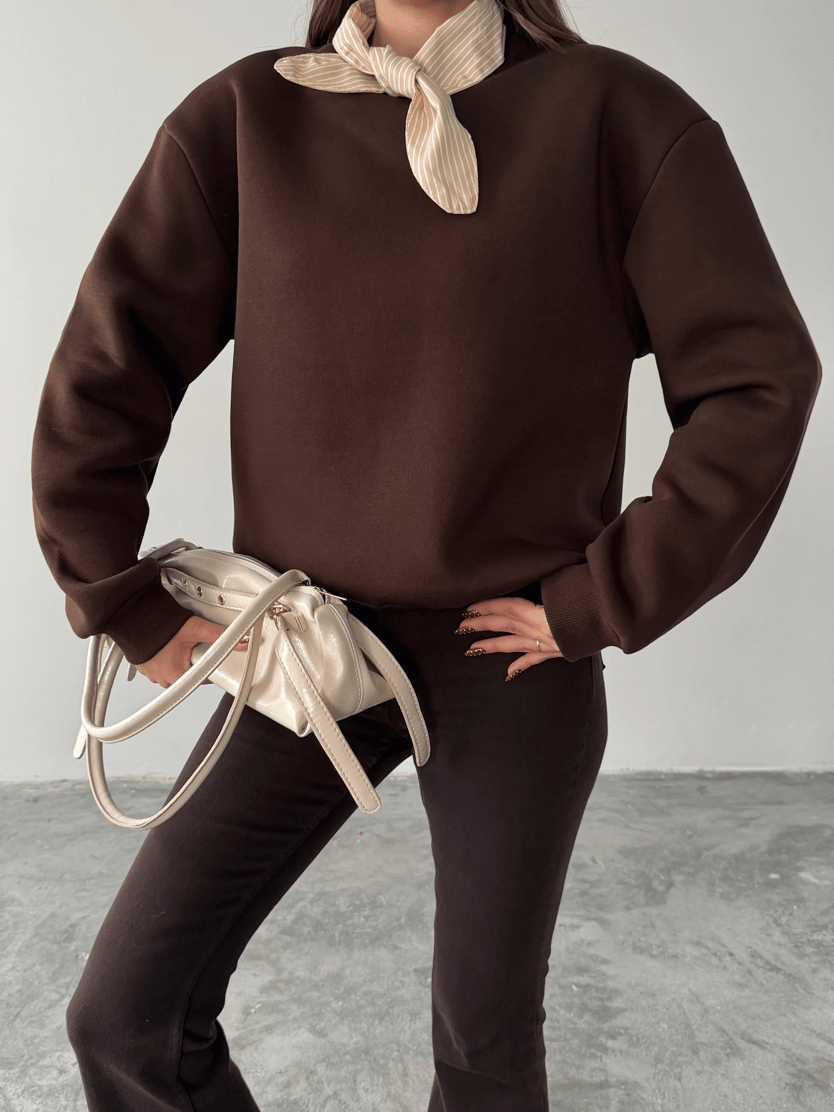 Fular Detaylı Sweatshirt - Kahve (MD4266_Kahve)