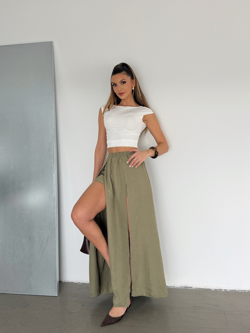 İçi Şortlu Derin Yırtmaç Maxi Etek - Haki (MD3924_Haki)