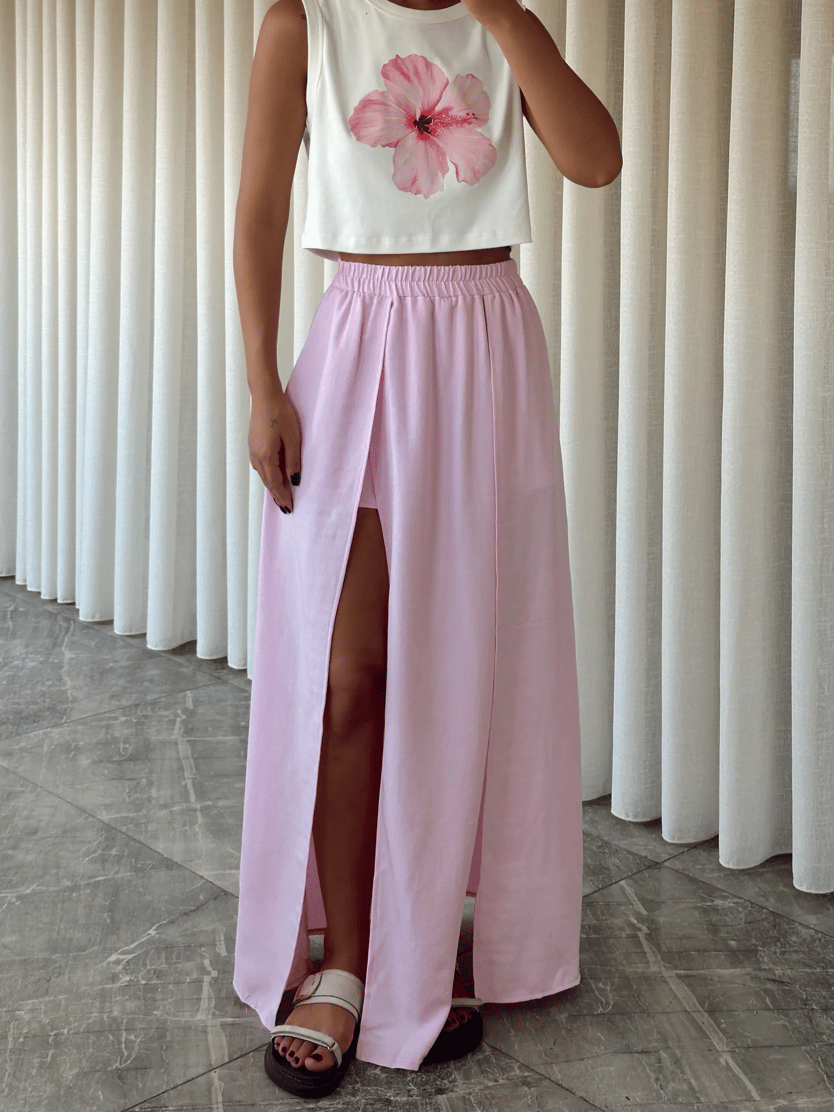 İçi Şortlu Derin Yırtmaç Maxi Etek - Pembe (MD3924_Pembe)