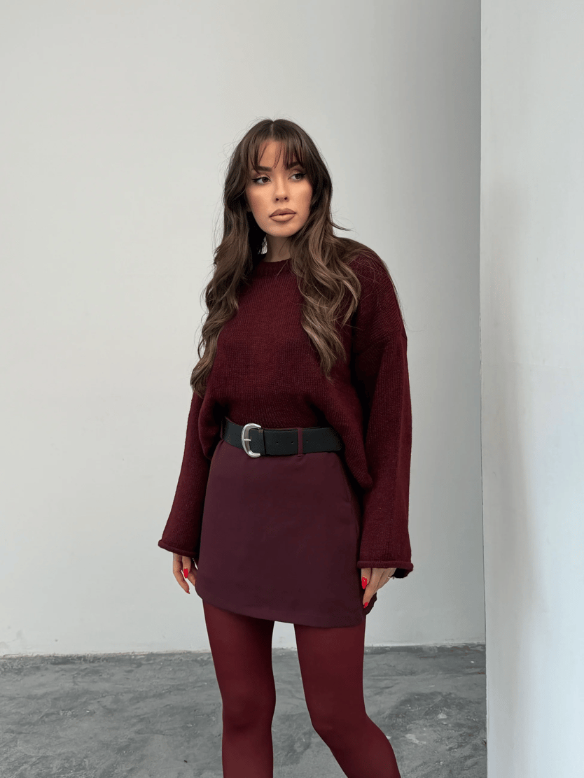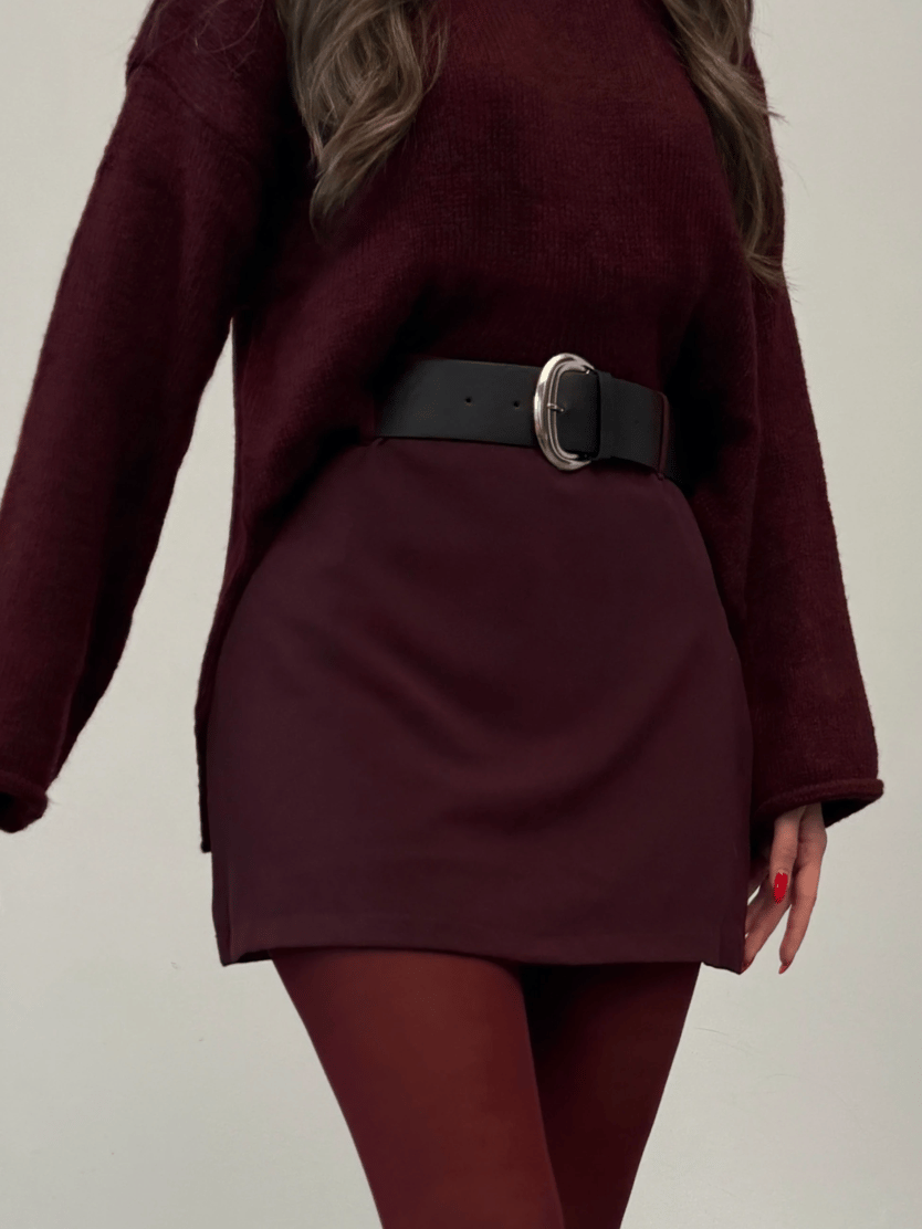 İçi Şortlu Kemerli Etek - Bordo (MD4244_Bordo)