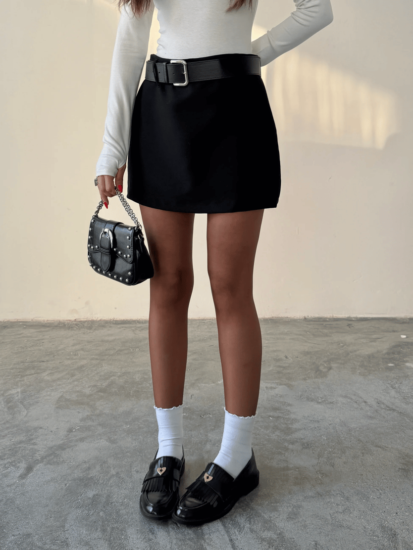 İçi Şortlu Kemerli Etek - Siyah (MD4244_Siyah)