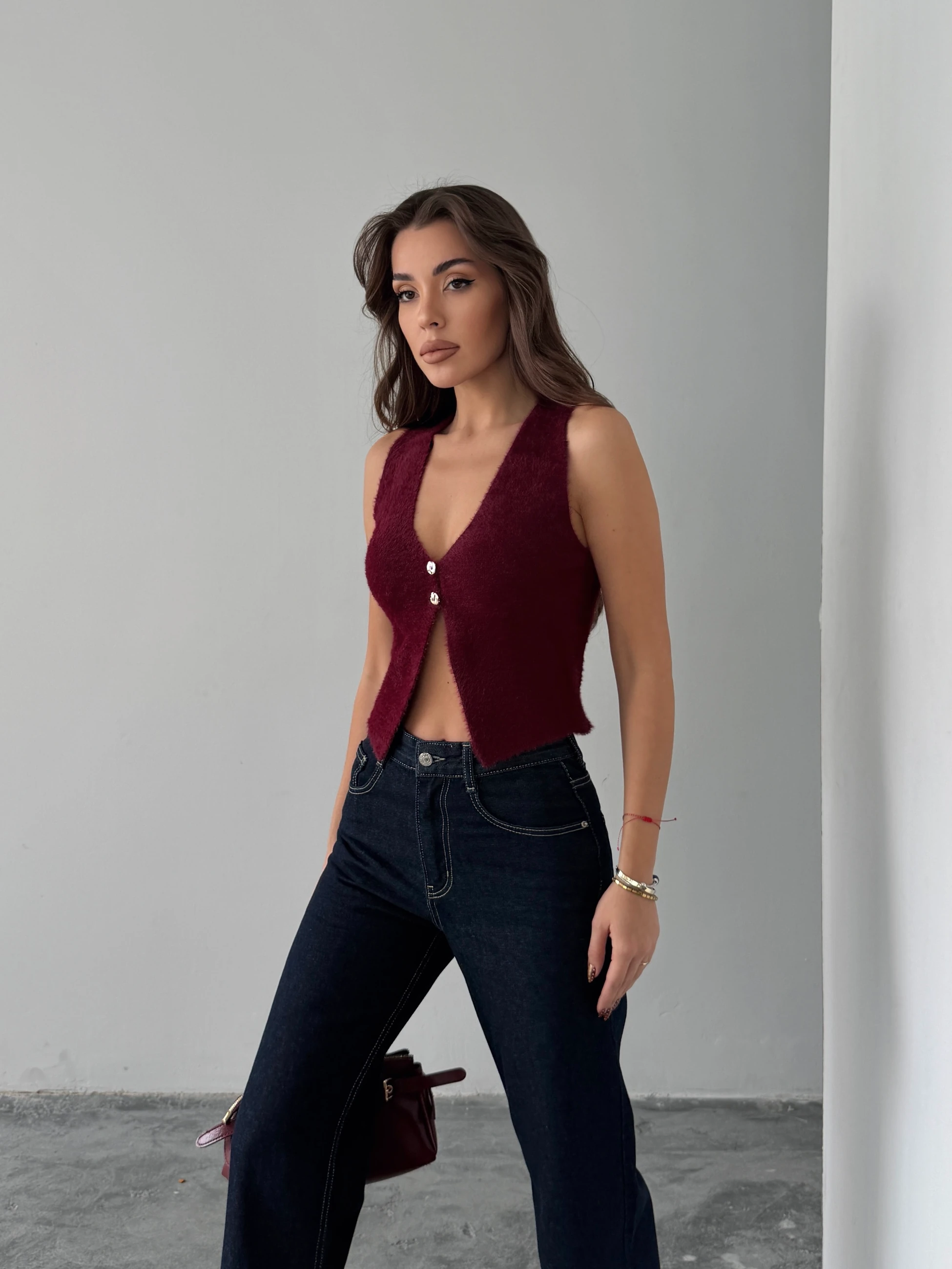 İki Düğmeli Yumoş Yelek - Bordo (MD4256_Bordo)