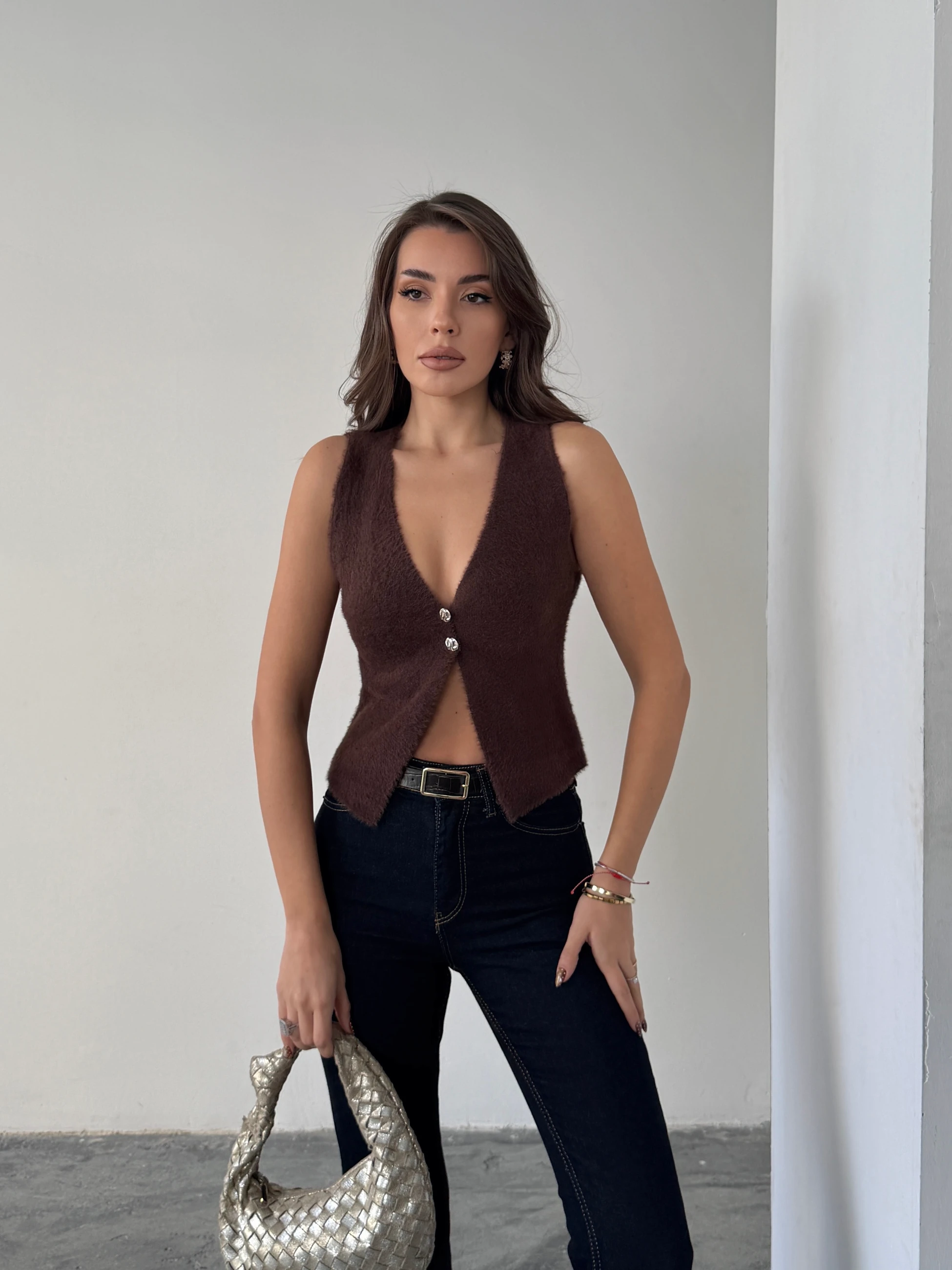 İki Düğmeli Yumoş Yelek - Kahve (MD4256_Kahve)