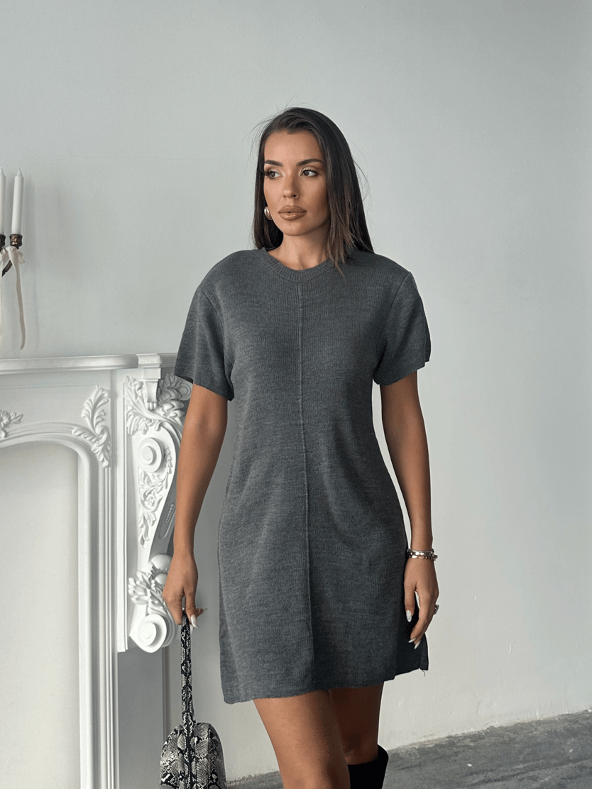 İnterlok Kumaş Kısa Kol Elbise - Gri (MD4089_Gri)