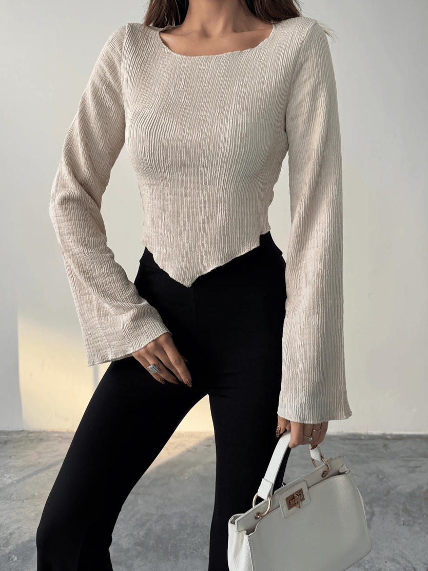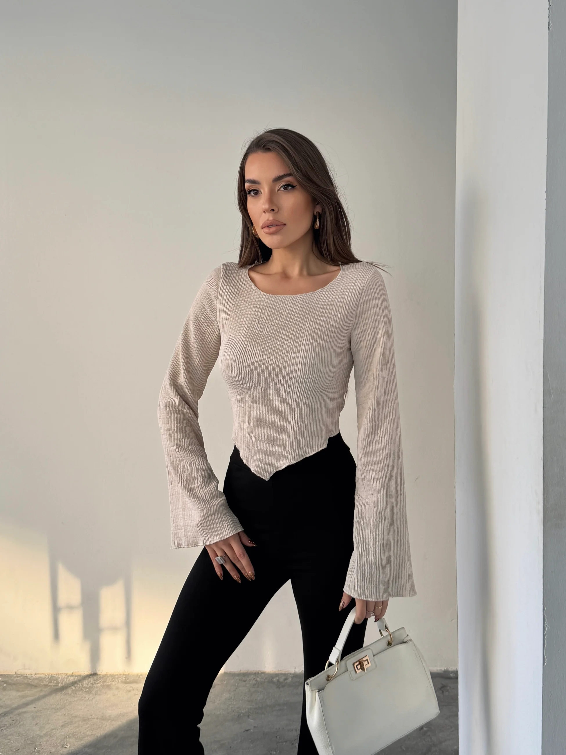 İspanyol Kol Akordiyon Bluz - Taş (MD4309_Taş)