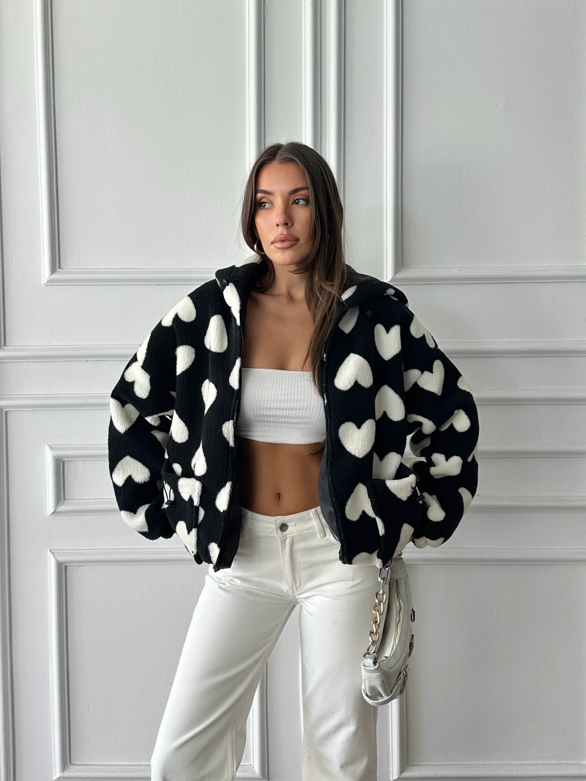Kalp Desenli Fermuarlı Peluş - Siyah (MD4083_Siyah)
