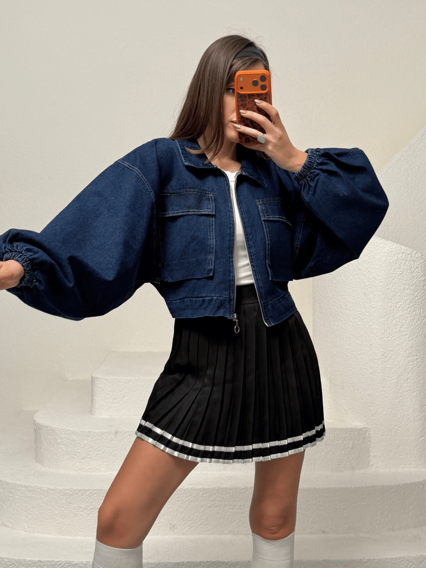 Kapak Cepli Balon Kol Denim Ceket - Lacivert (MD4332_Lacivert)