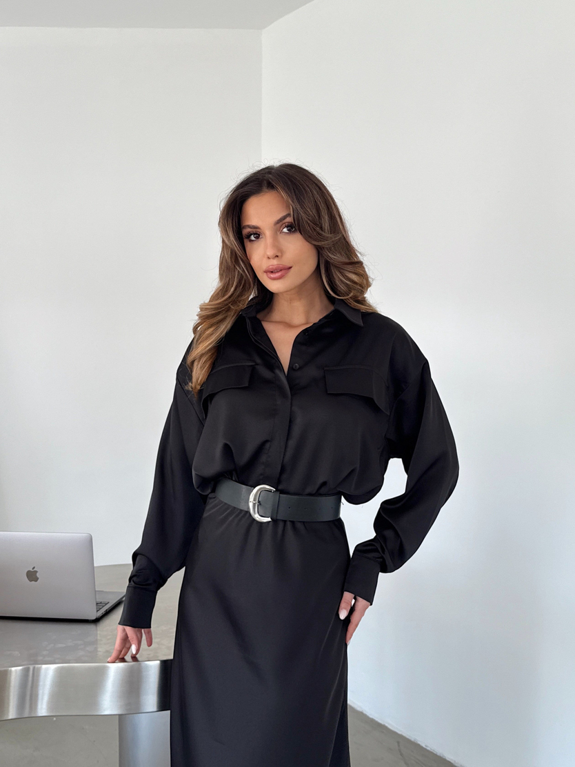 Kapak Cepli Krep Saten Gömlek - Siyah (MYD7519_Siyah)
