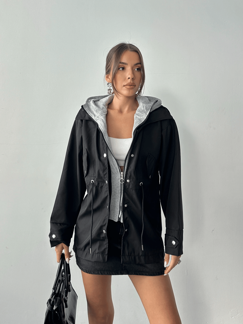 Kapüşonlu Cep Detay Yağmurluk - Siyah (MD4084_Siyah)