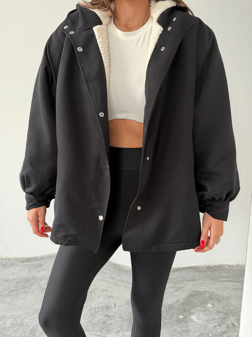 Kapüşonlu İçi Peluş Mont - Siyah (MD4214_Siyah)