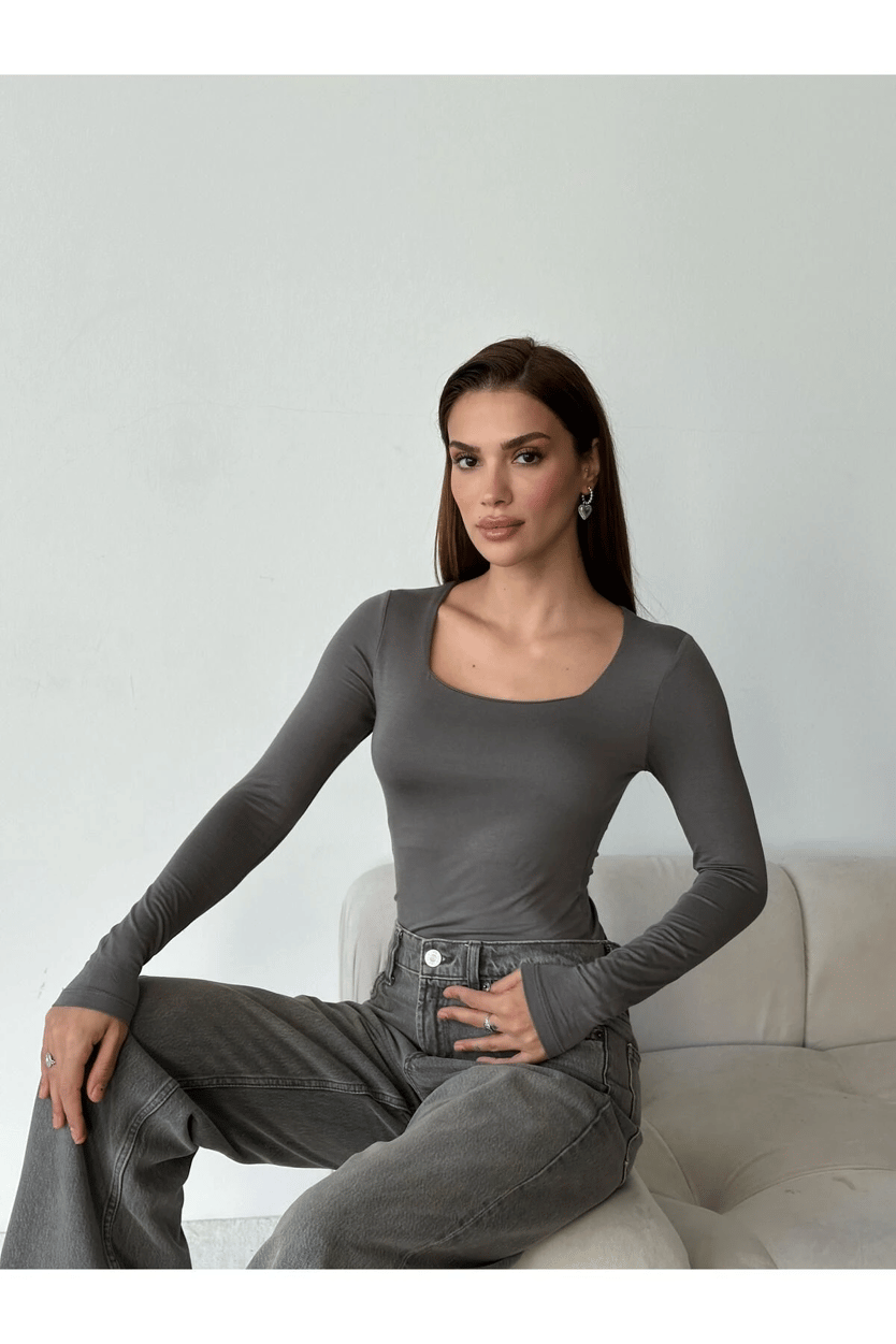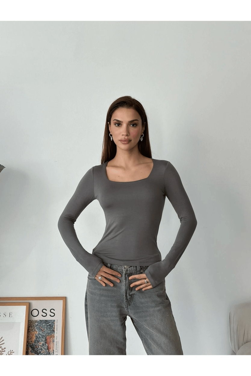 Kare Yaka Basic Bluz Gri - Gri (MYD6000A.BL.1_Gri)