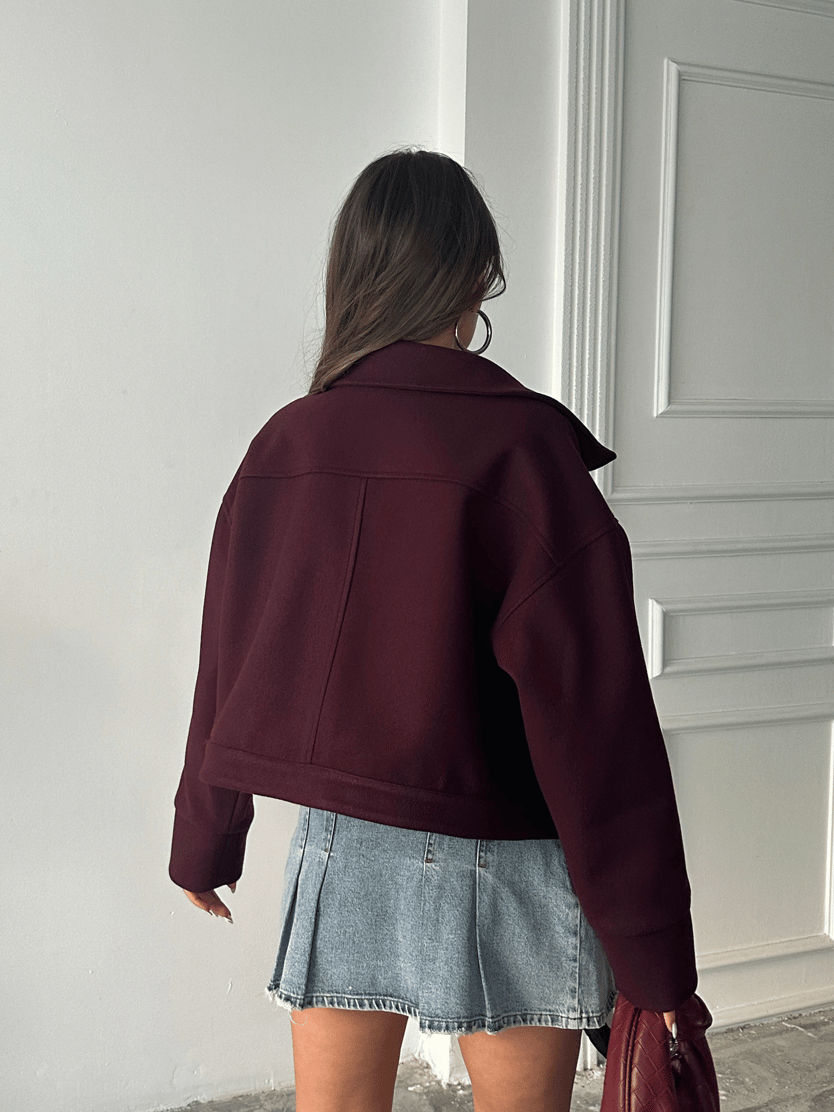Kaşe Crop Mont - Mürdüm (MYD7498_Mürdüm)
