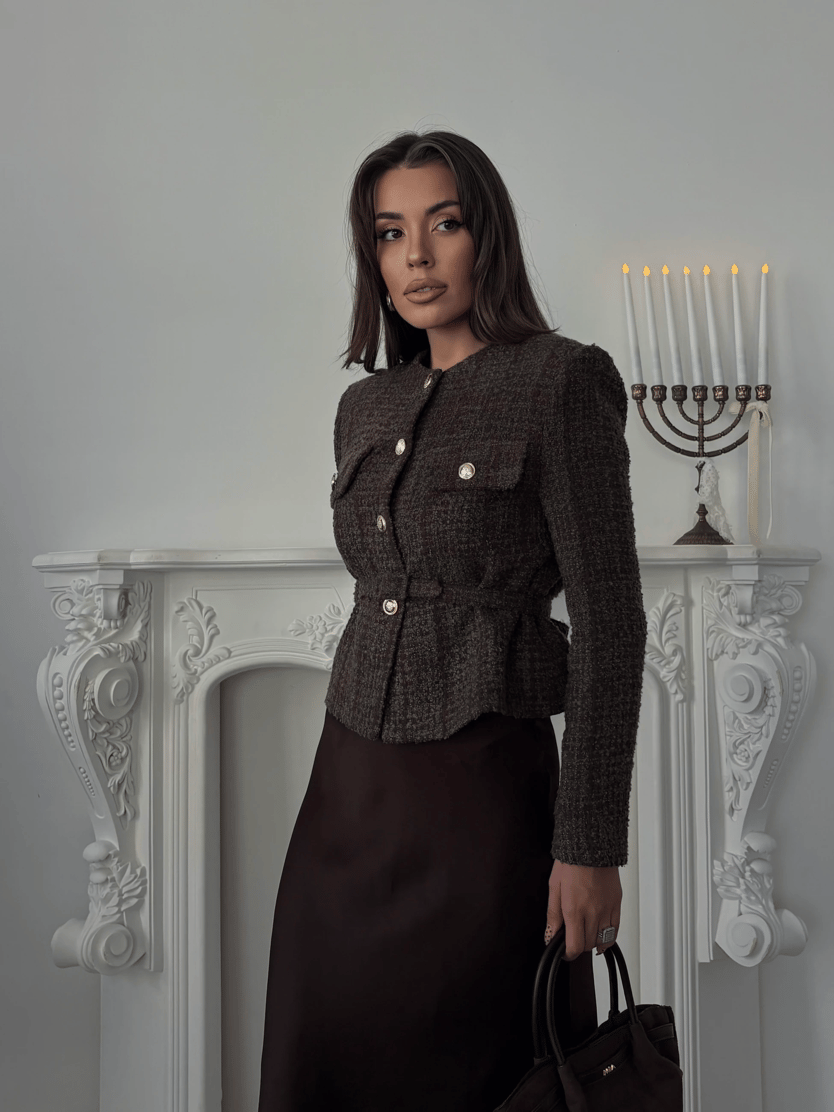 Kemer Detaylı Düğmeli Ceket - Kahve (MYD7507_Kahve)