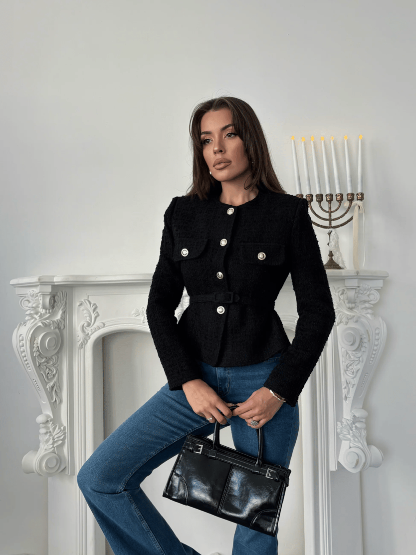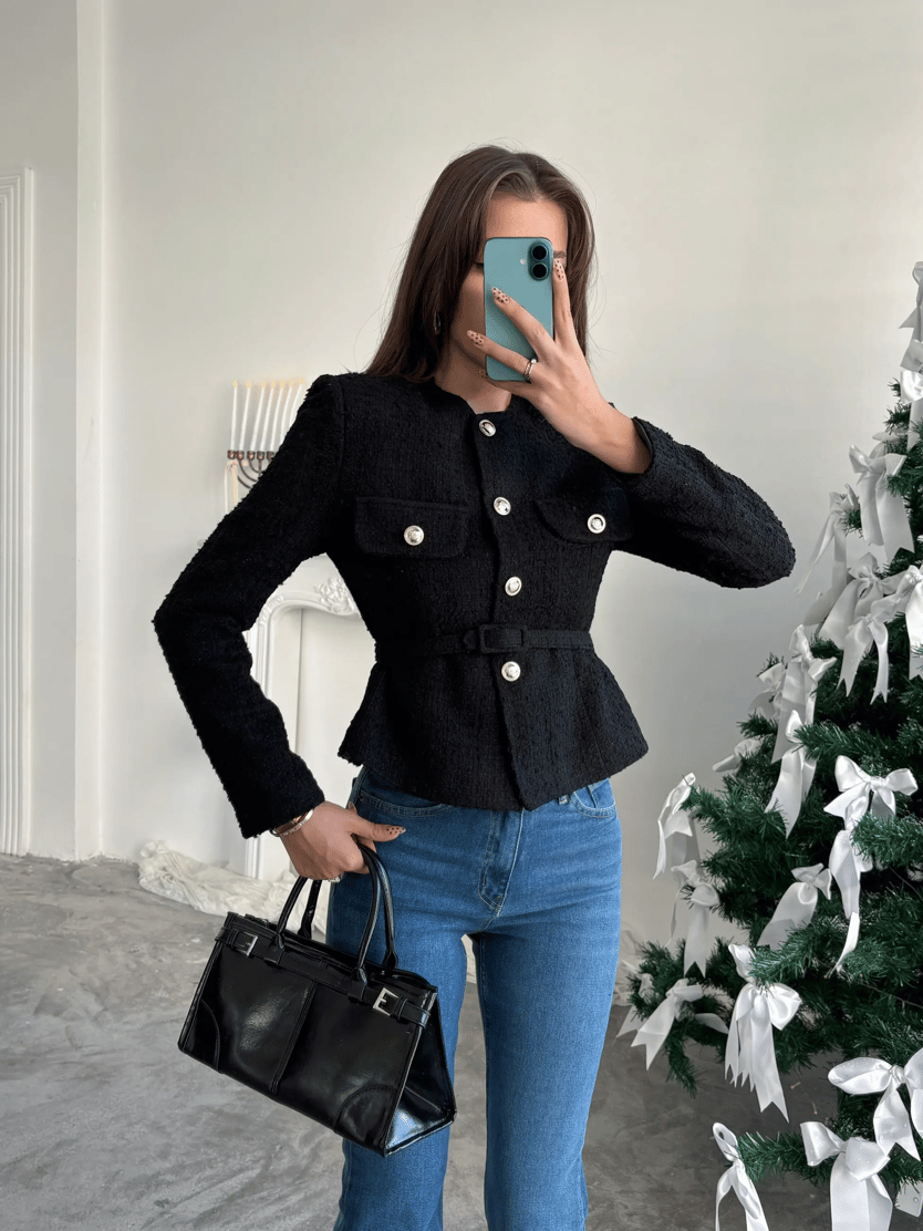 Kemer Detaylı Düğmeli Ceket - Siyah (MYD7507_Siyah)