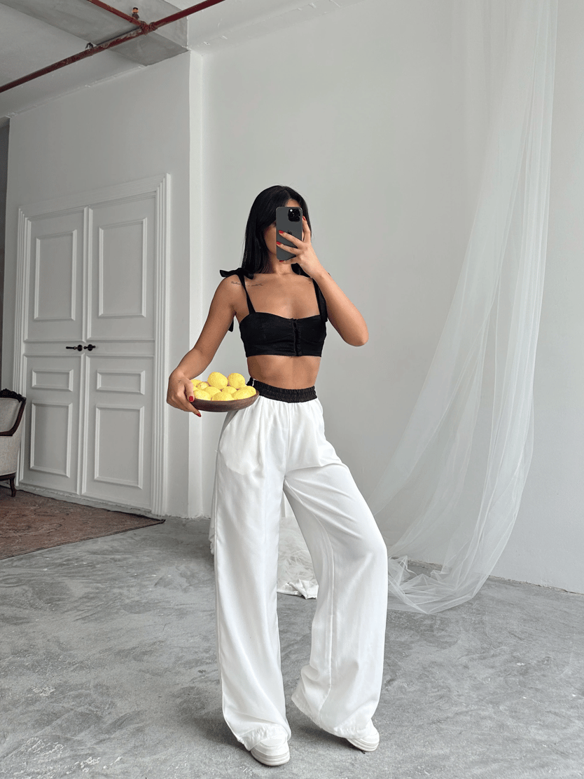 Kemer Detaylı Palazzo Pantolon - Beyaz (MYD2564_Beyaz)
