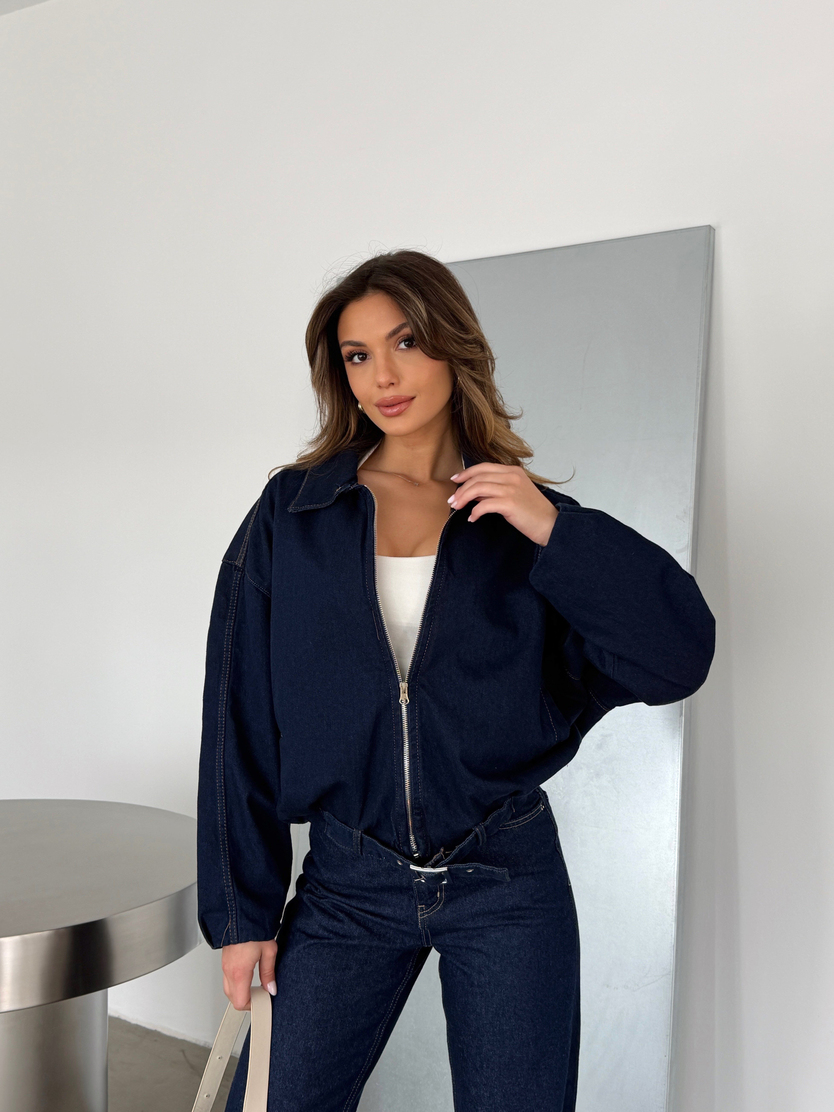 Cep Detaylı Kemerli Bomber Kot Ceket