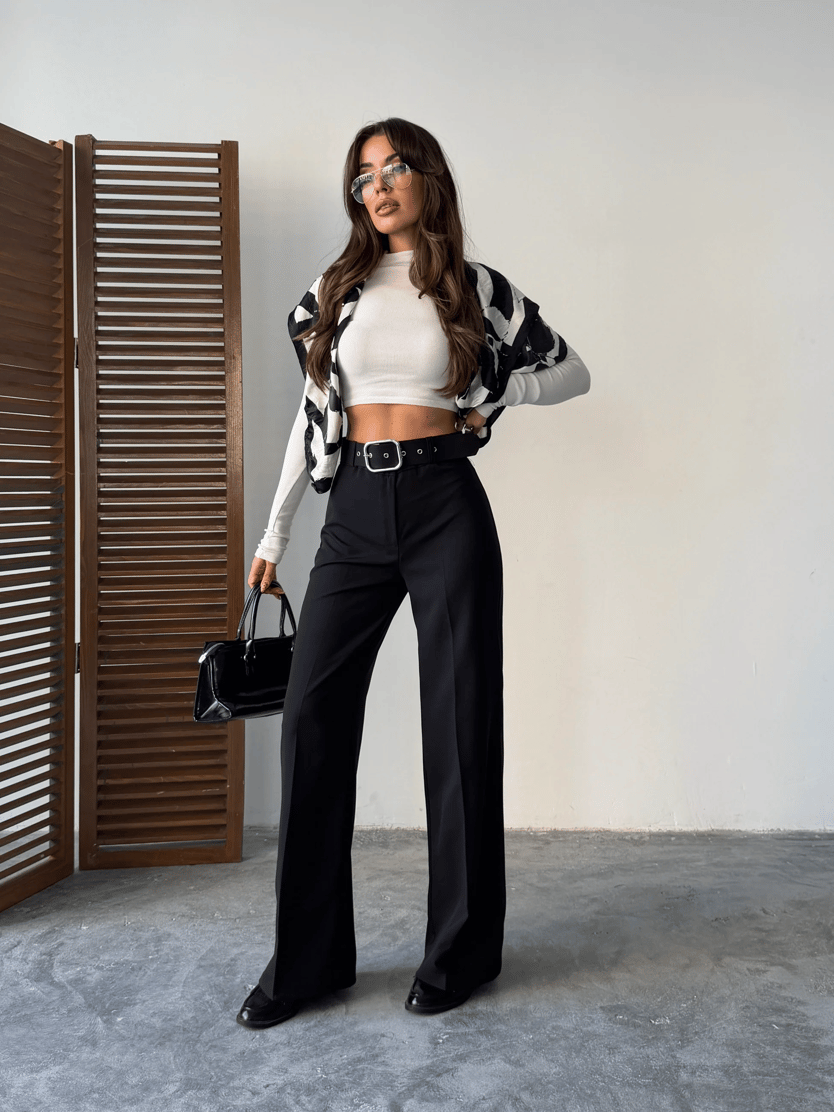 Kemerli Palazzo Pantolon - Siyah (MD4181_Siyah)
