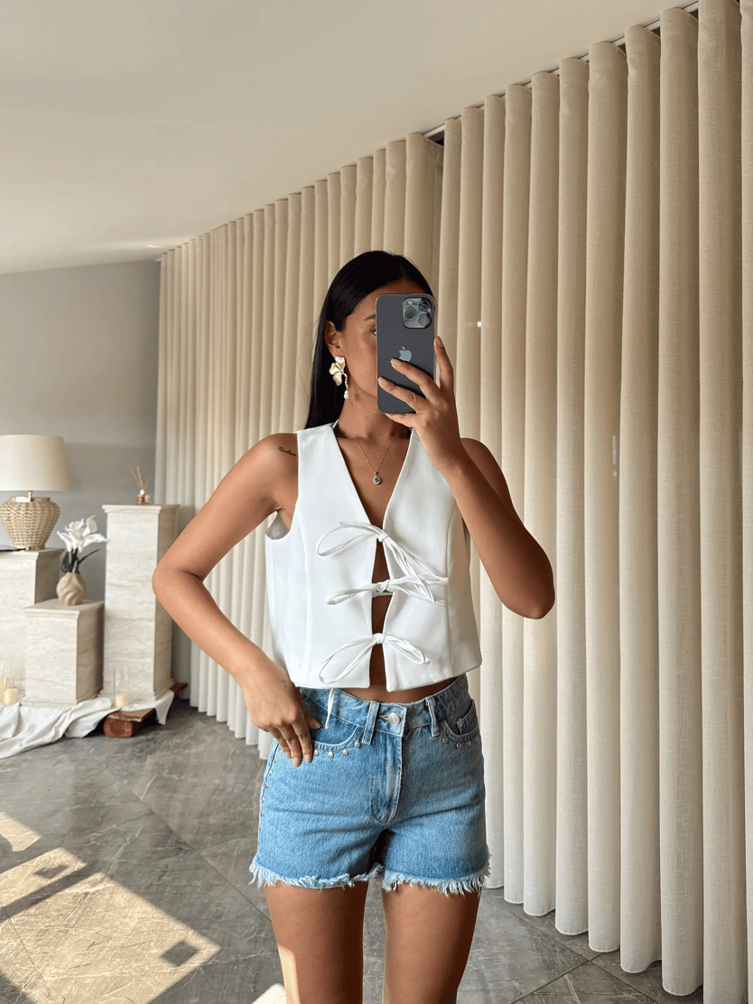 Keten Bağcıklı Yelek - Beyaz (MD4004_Beyaz)