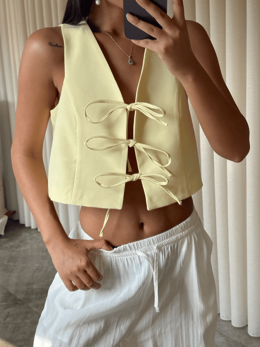 Keten Bağcıklı Yelek - Sarı (MD4004_Sarı)