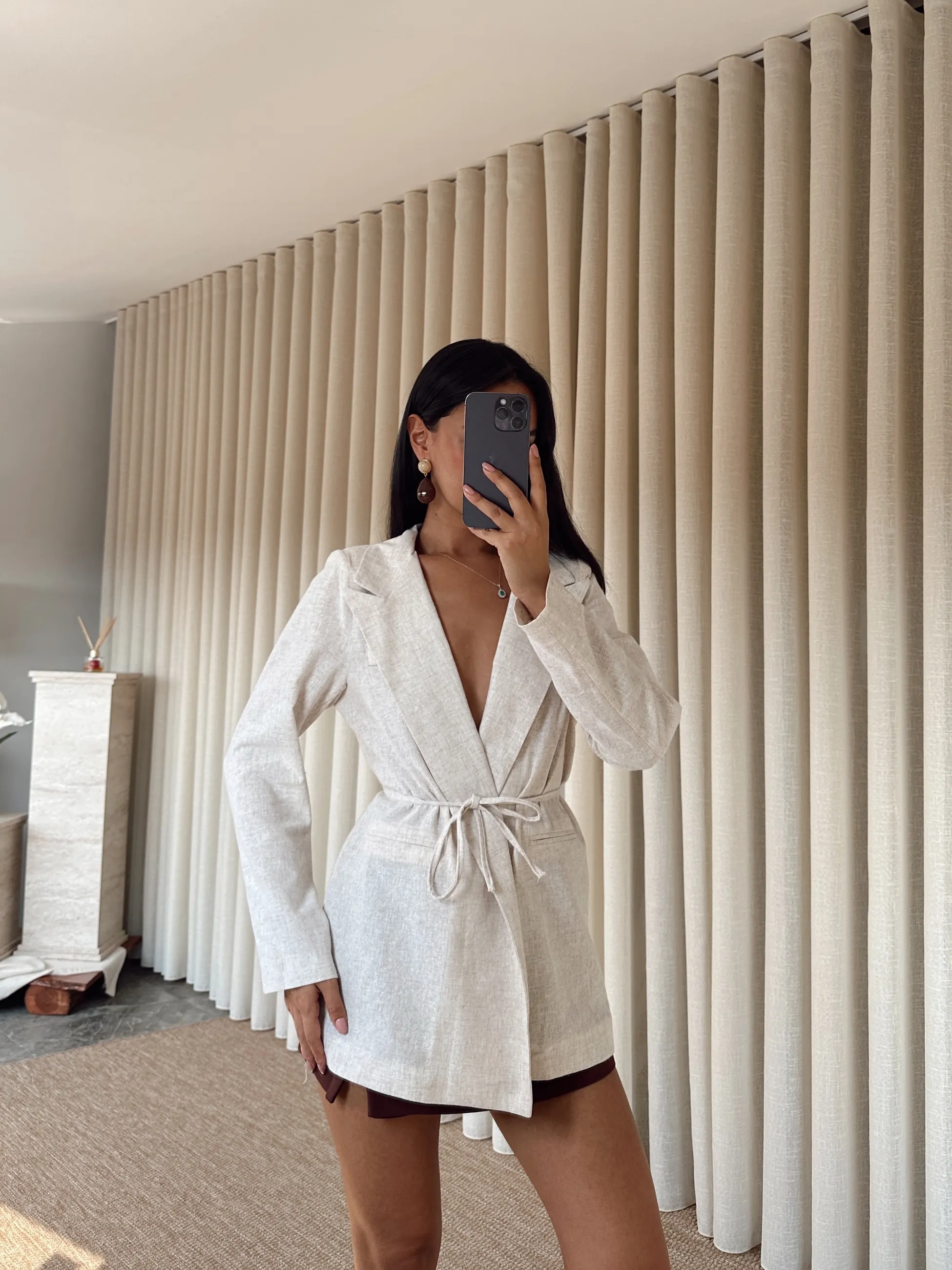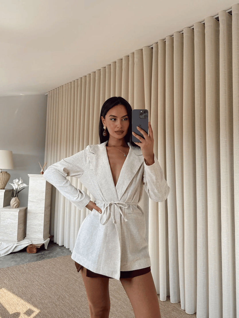 Keten Bağlamalı Blazer Ceket - Ekru (MYD4128_Ekru)