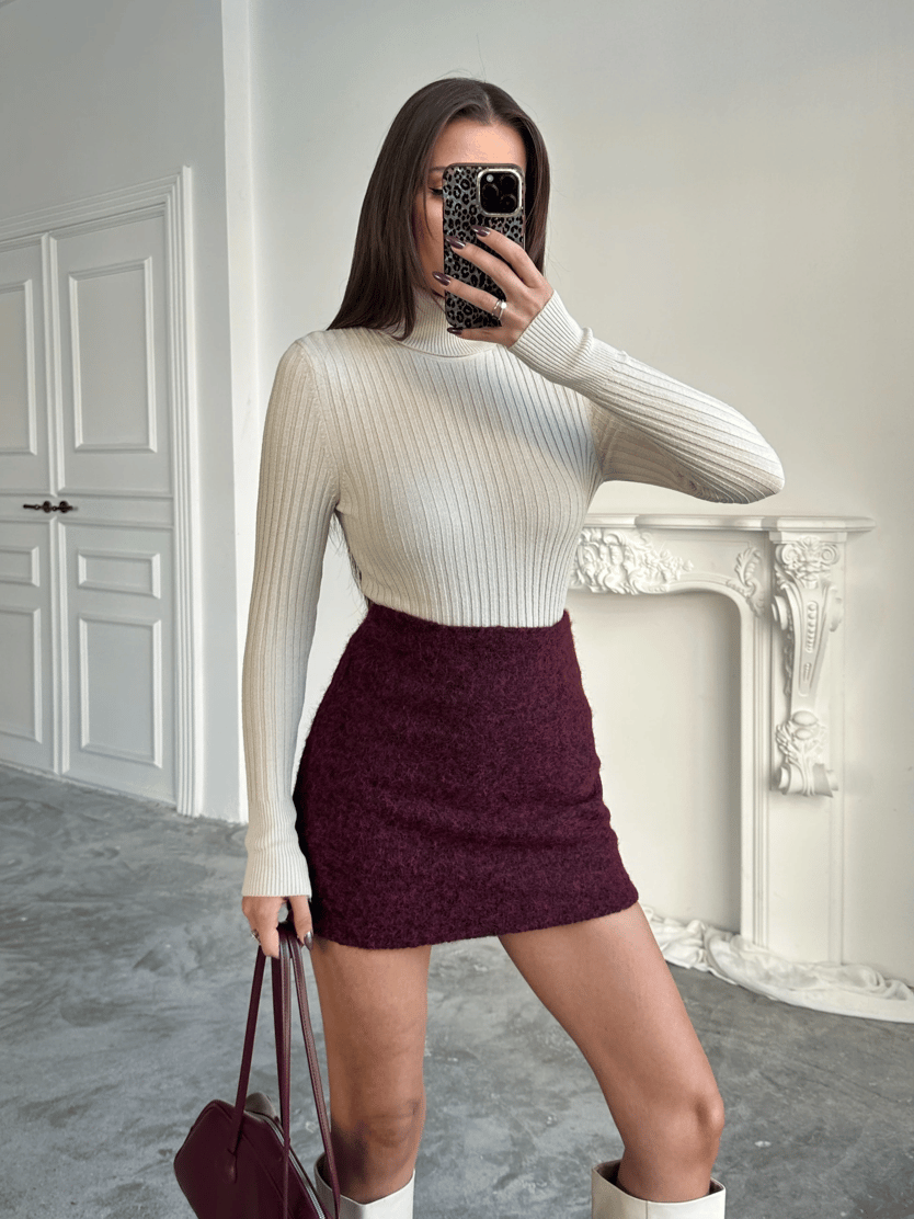 Kırçıllı Kaşe Etek - Bordo (MD4130_Bordo)