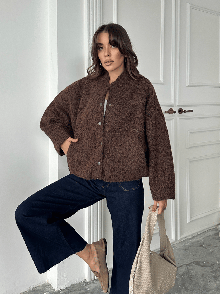 Kırçıllı Kaşe Mont - Kahve (MYD7394_Kahve)