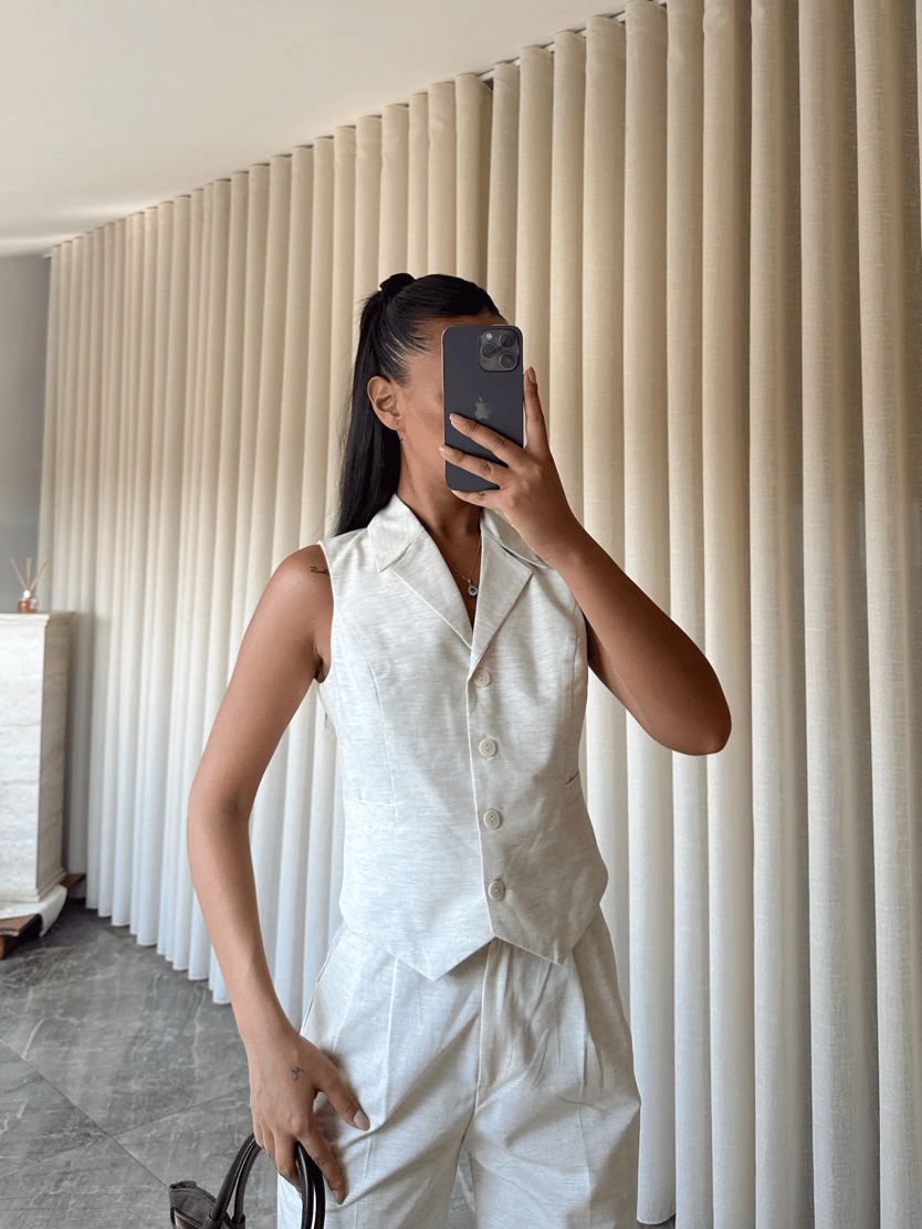 Kırlangıç Yaka Keten Yelek - Krem (MD3923_Krem)