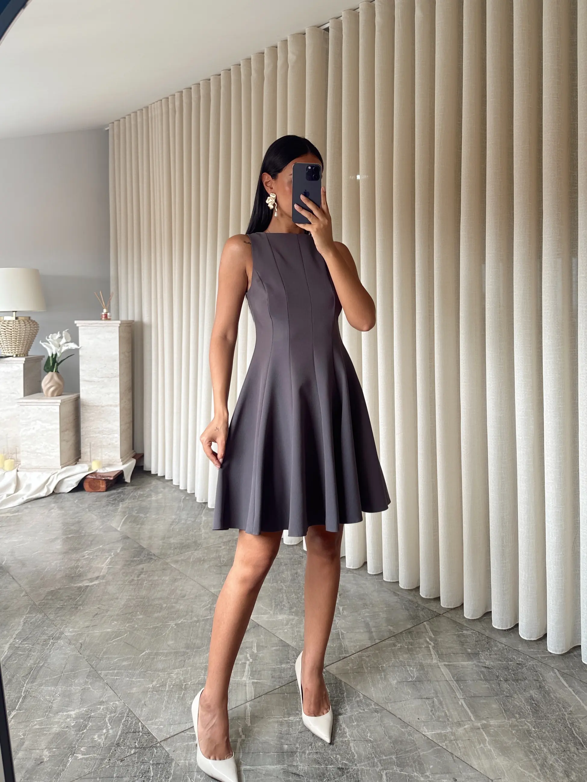 Kolsuz Kloş Elbise - Antrasit (MD3737_Antrasit)