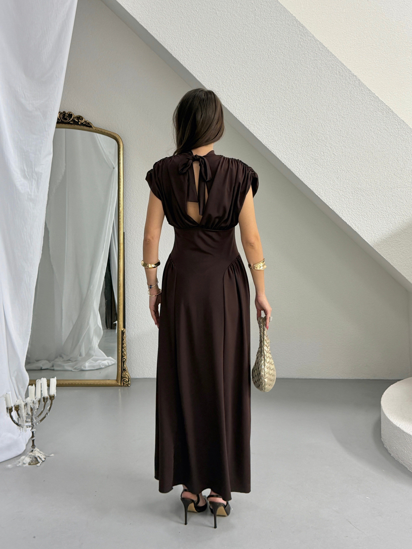 Korse Detaylı Drapeli Elbise - Kahve (MD4368_Kahve)