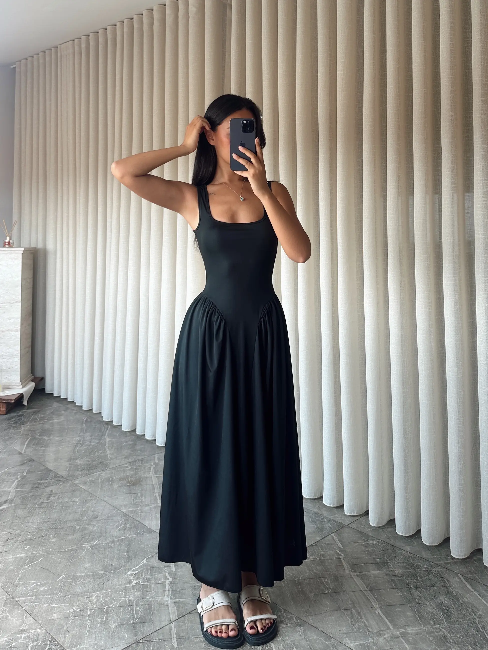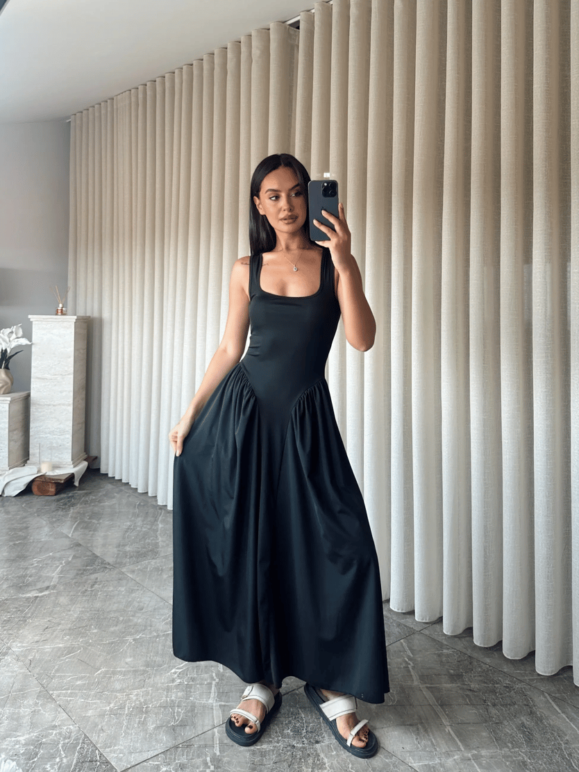 Korse Detaylı Midi Elbise - Siyah (MD3977_Siyah)