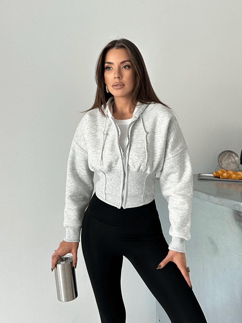 Korse Manşet Fermuarlı Sweat Hırka - Gri (MD4124_Gri)