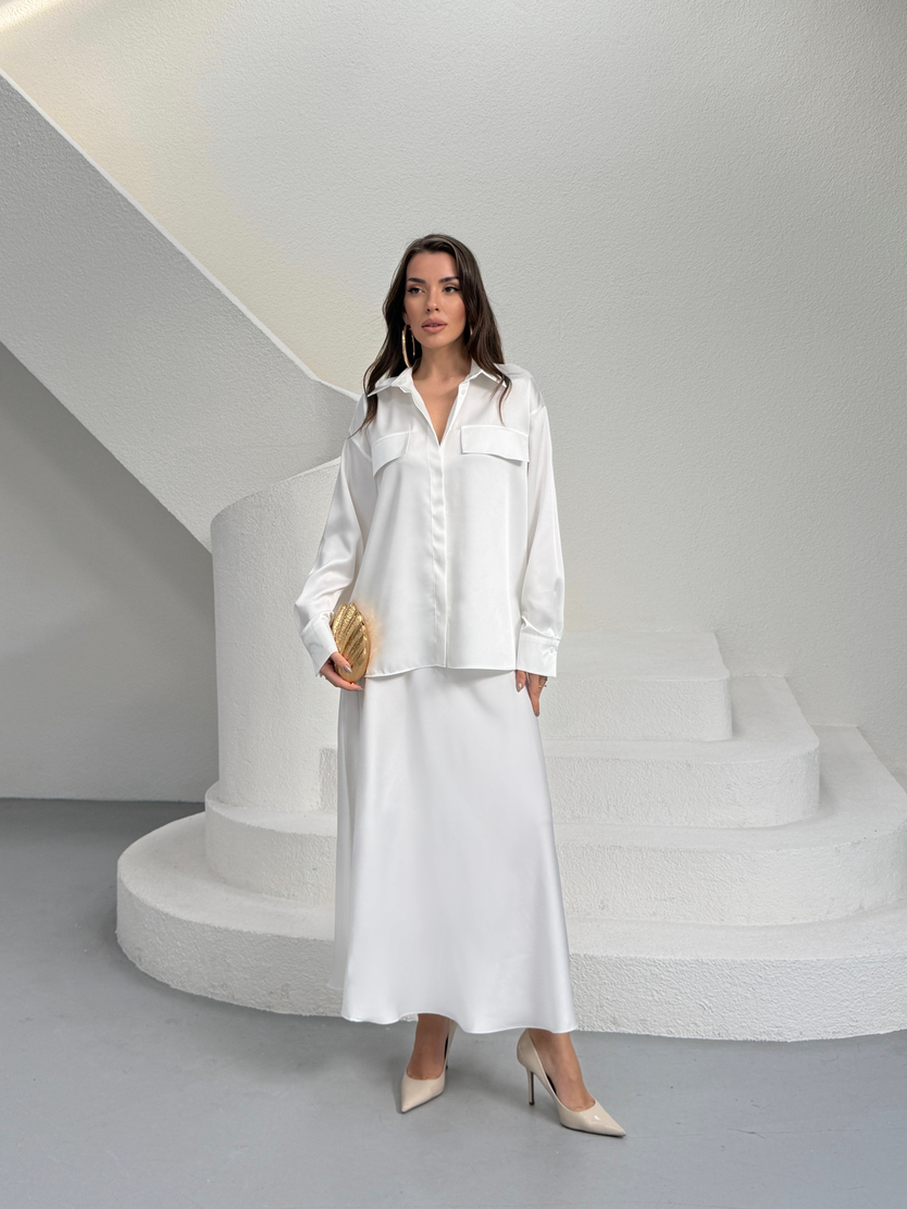 Krep Saten Gömlekli Takım - Ekru (MYD7516_Ekru)