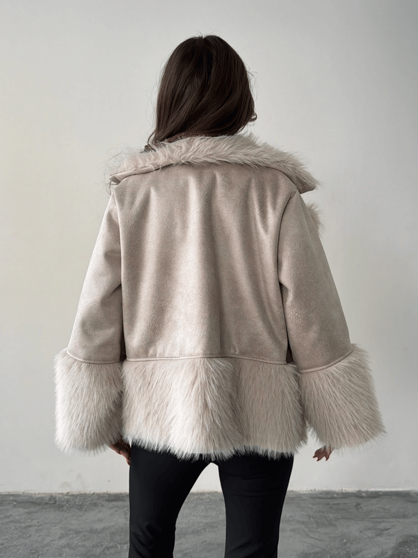 Kürklü Süet Kaban - Taş (MD4252_Taş)