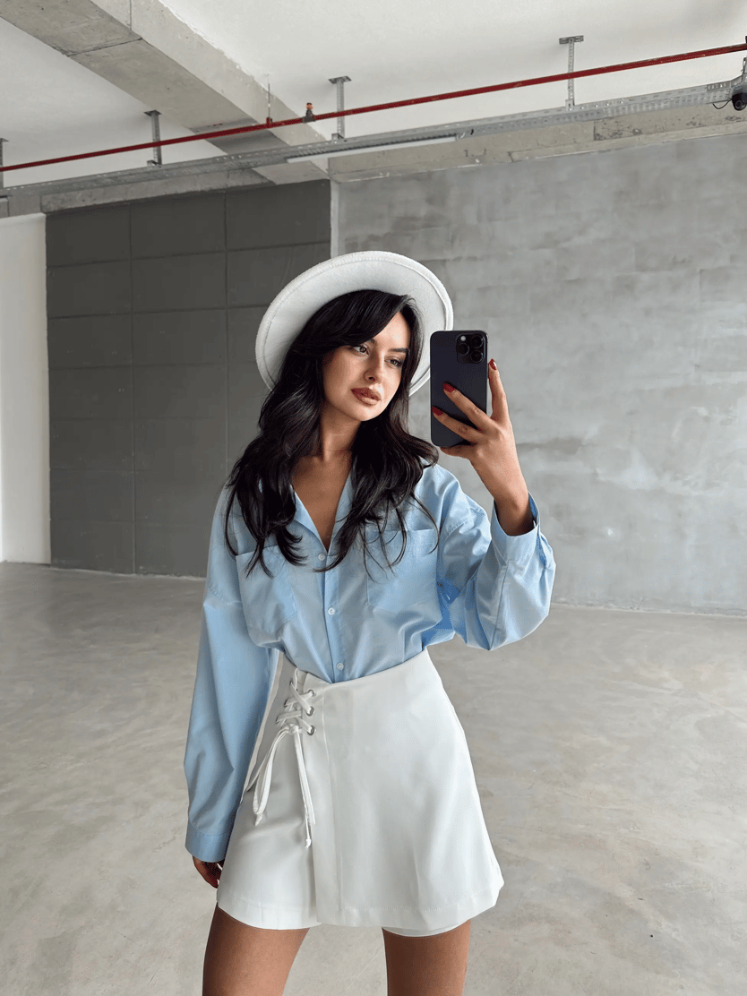 Kuşgözü Detay Şort Etek - Beyaz (MYD7455_Beyaz)