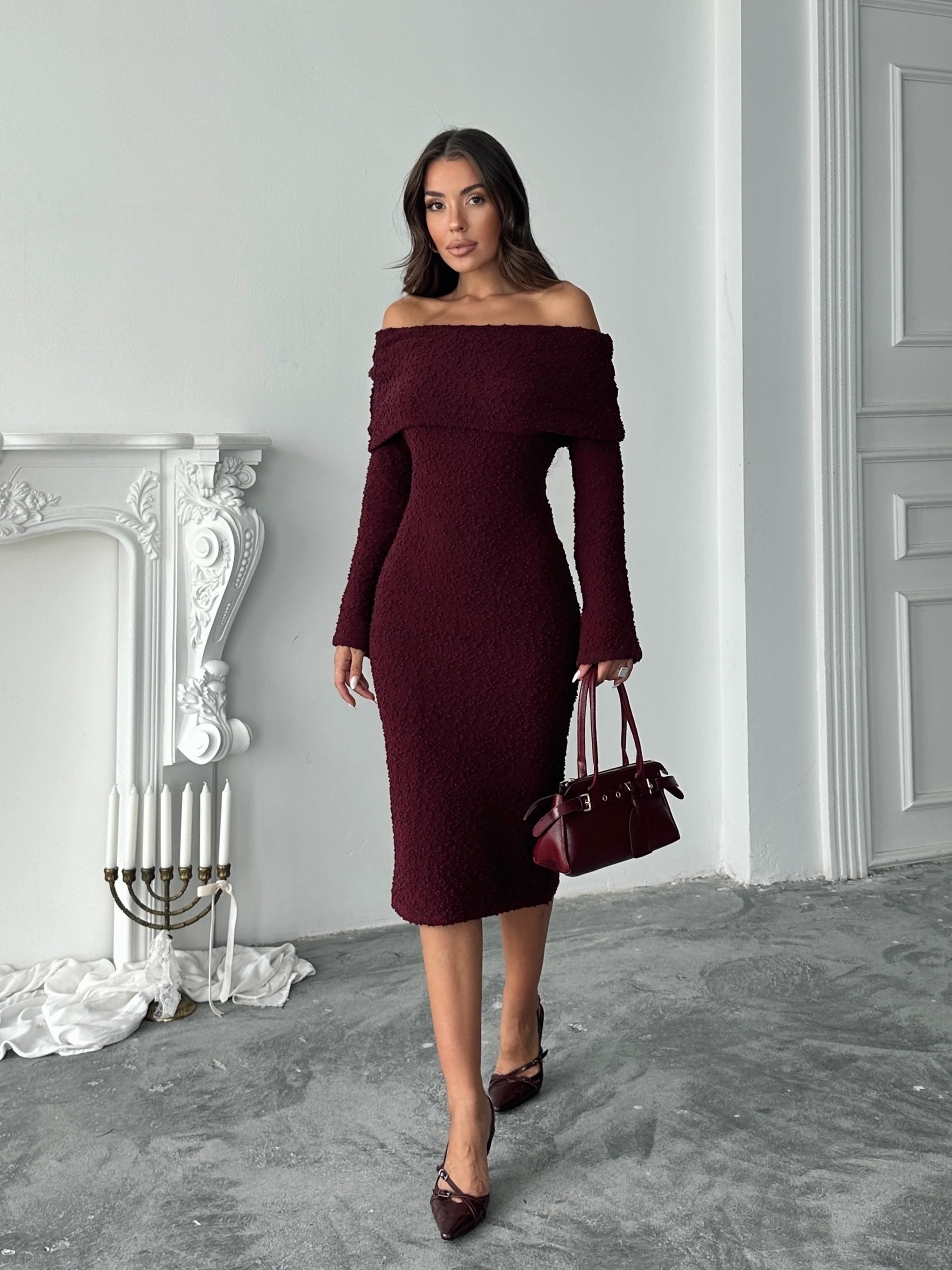 Madonna Yaka Buklet Elbise - Bordo (MD4074_Bordo)
