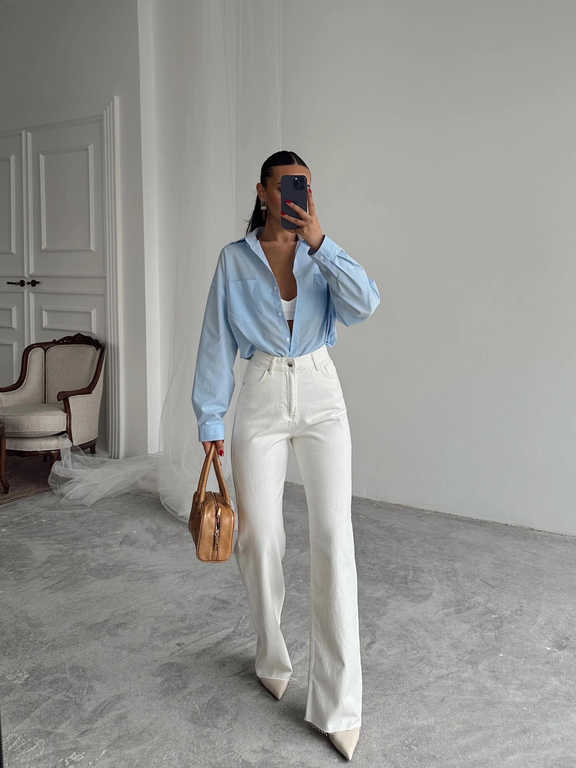 Massimo Paça Kesik Palazzo Jean - Beyaz (MYD9560_Beyaz)