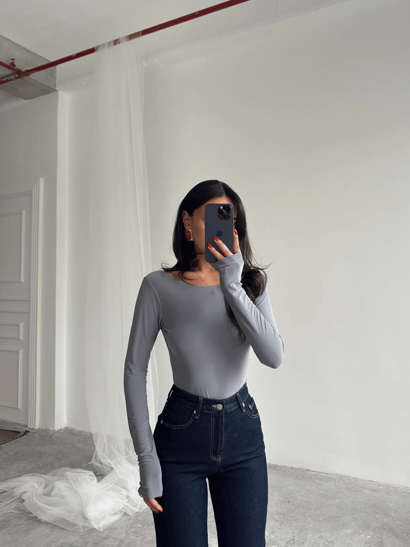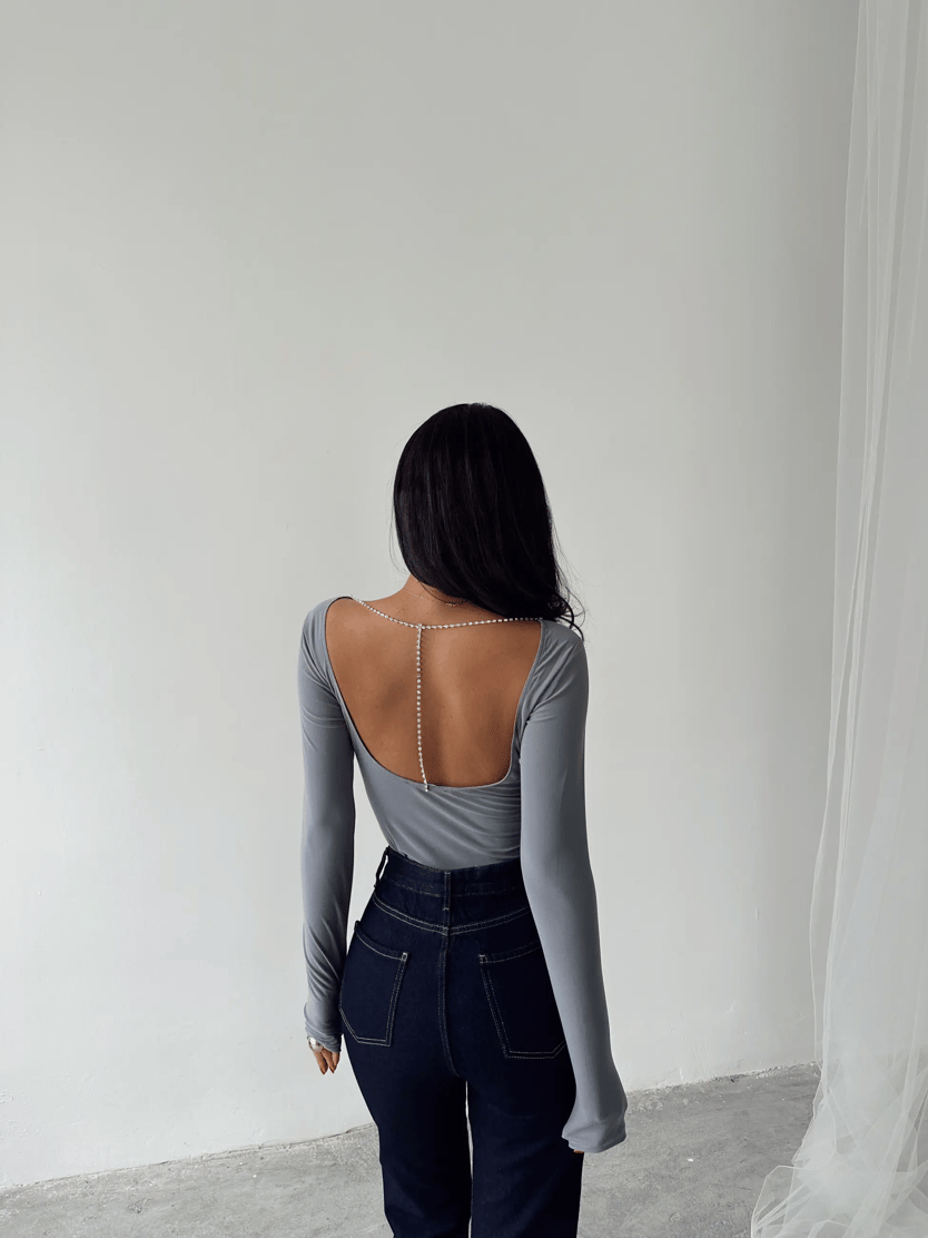 Mia Diamond Detay Bodysuit Gri - Gri (MYD7283.BD.01_Gri)